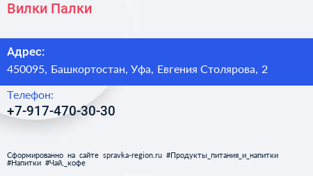 Вилки Палки по адресу 450095, Башкортостан, Уфа, Евгения Столярова, 2 в дальнейшем Организация, размещена в следующих категориях: