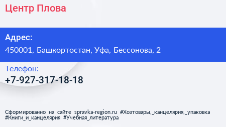 Центр Плова по адресу 450001, Башкортостан, Уфа, Бессонова, 2 в дальнейшем Организация, размещена в следующих категориях: