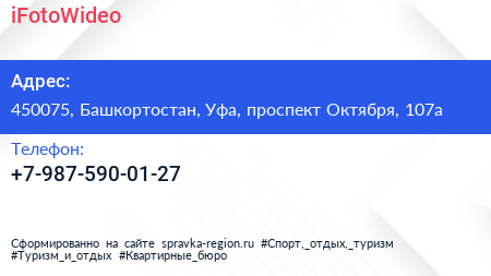 iFotoWideo по адресу 450075, Башкортостан, Уфа, проспект Октября, 107а в дальнейшем Организация, размещена в следующих категориях: