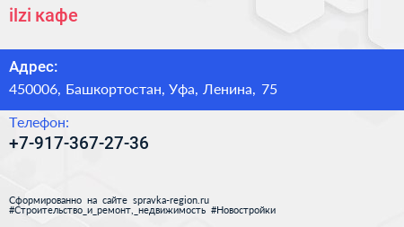 ilzi, кафе по адресу 450006, Башкортостан, Уфа, Ленина, 75 в дальнейшем Организация, размещена в следующих категориях: