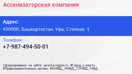 Ассенизаторская компания по адресу 450900, Башкортостан, Уфа, Степная, 1 в дальнейшем Организация, размещена в следующих категориях: