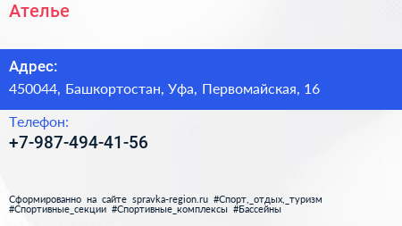 Ателье по адресу 450044, Башкортостан, Уфа, Первомайская, 16 в дальнейшем Организация, размещена в следующих категориях: