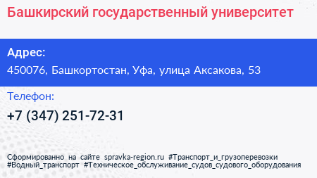 Башкирский государственный университет по адресу 450076, Башкортостан, Уфа, улица Аксакова, 53 в дальнейшем Организация, размещена в следующих категориях: