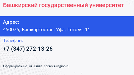 Башкирский государственный университет по адресу 450076, Башкортостан, Уфа, Гоголя, 11 в дальнейшем Организация, размещена в следующих категориях:
