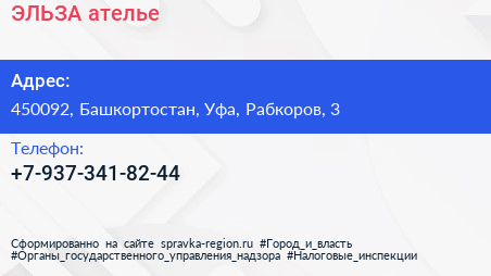 ЭЛЬЗА, ателье по адресу 450092, Башкортостан, Уфа, Рабкоров, 3 в дальнейшем Организация, размещена в следующих категориях: