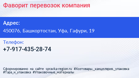 Фаворит перевозок, компания по адресу 450076, Башкортостан, Уфа, Гафури, 19 в дальнейшем Организация, размещена в следующих категориях: