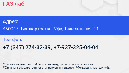 ГАЗ-лаб по адресу 450047, Башкортостан, Уфа, Бакалинская, 11 в дальнейшем Организация, размещена в следующих категориях: