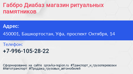 Габбро Диабаз, магазин ритуальных памятников по адресу 450001, Башкортостан, Уфа, проспект Октября, 14 в дальнейшем Организация, размещена в следующих категориях: