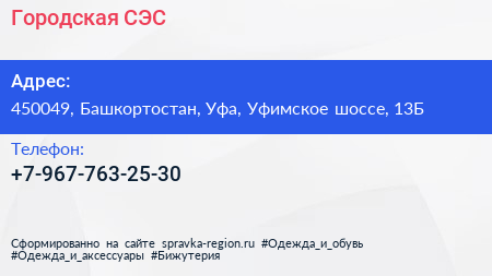 Городская СЭС по адресу 450049, Башкортостан, Уфа, Уфимское шоссе, 13Б в дальнейшем Организация, размещена в следующих категориях: