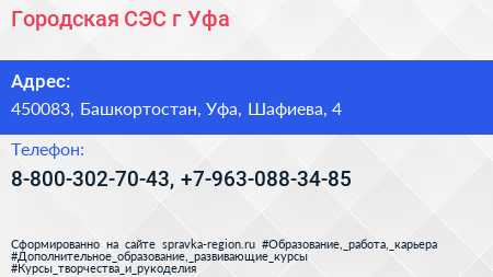 Городская СЭС, г. Уфа по адресу 450083, Башкортостан, Уфа, Шафиева, 4 в дальнейшем Организация, размещена в следующих категориях: