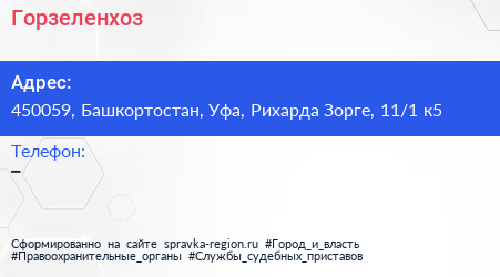 Горзеленхоз по адресу 450059, Башкортостан, Уфа, Рихарда Зорге, 11/1 к5 в дальнейшем Организация, размещена в следующих категориях: