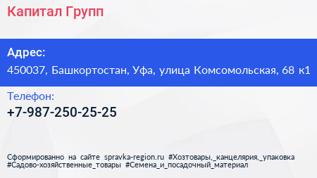 Капитал Групп по адресу 450037, Башкортостан, Уфа, улица Комсомольская, 68 к1 в дальнейшем Организация, размещена в следующих категориях: