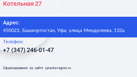 Котельная №27 по адресу 450022, Башкортостан, Уфа, улица Менделеева, 132а в дальнейшем Организация, размещена в следующих категориях: