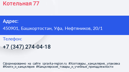 Котельная №77 по адресу 450901, Башкортостан, Уфа, Нефтяников, 20/1 в дальнейшем Организация, размещена в следующих категориях: