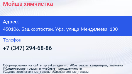 Мойша, химчистка по адресу 450106, Башкортостан, Уфа, улица Менделеева, 130 в дальнейшем Организация, размещена в следующих категориях: