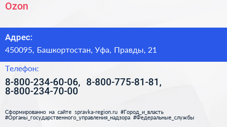 Ozon по адресу 450095, Башкортостан, Уфа, Правды, 21 в дальнейшем Организация, размещена в следующих категориях: