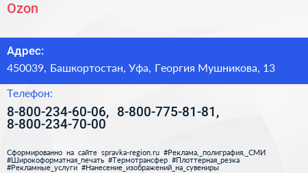 Ozon по адресу 450039, Башкортостан, Уфа, Георгия Мушникова, 13 в дальнейшем Организация, размещена в следующих категориях: