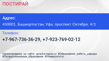 ПОСТИРАЙ по адресу 450001, Башкортостан, Уфа, проспект Октября, 4/1 в дальнейшем Организация, размещена в следующих категориях: