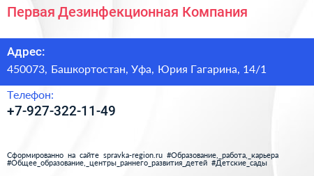 Первая Дезинфекционная Компания по адресу 450073, Башкортостан, Уфа, Юрия Гагарина, 14/1 в дальнейшем Организация, размещена в следующих категориях: