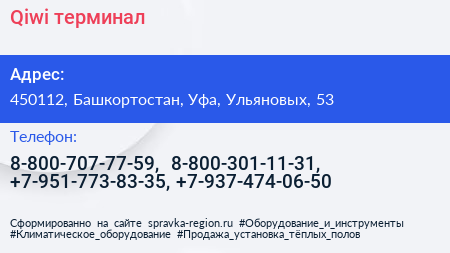 Qiwi, терминал по адресу 450112, Башкортостан, Уфа, Ульяновых, 53 в дальнейшем Организация, размещена в следующих категориях: