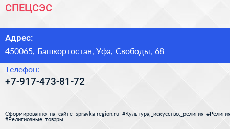 СПЕЦСЭС по адресу 450065, Башкортостан, Уфа, Свободы, 68 в дальнейшем Организация, размещена в следующих категориях: