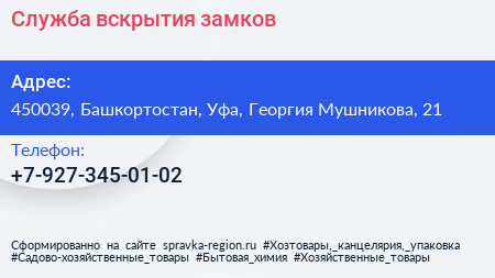 Служба вскрытия замков по адресу 450039, Башкортостан, Уфа, Георгия Мушникова, 21 в дальнейшем Организация, размещена в следующих категориях: