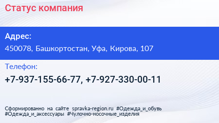 Статус, компания по адресу 450078, Башкортостан, Уфа, Кирова, 107 в дальнейшем Организация, размещена в следующих категориях: