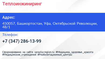 Теплоинжиниринг по адресу 450057, Башкортостан, Уфа, Октябрьской Революции, 48/1 в дальнейшем Организация, размещена в следующих категориях: