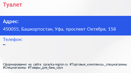 Туалет по адресу 450055, Башкортостан, Уфа, проспект Октября, 158 в дальнейшем Организация, размещена в следующих категориях:
