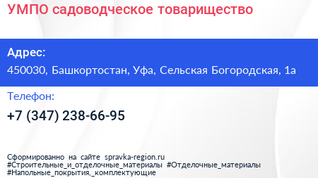 УМПО, садоводческое товарищество по адресу 450030, Башкортостан, Уфа, Сельская Богородская, 1а в дальнейшем Организация, размещена в следующих категориях: