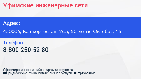 Уфимские инженерные сети по адресу 450006, Башкортостан, Уфа, 50-летия Октября, 15 в дальнейшем Организация, размещена в следующих категориях: