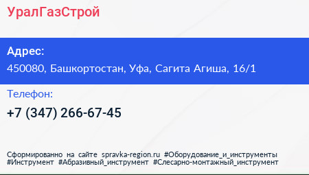 УралГазСтрой по адресу 450080, Башкортостан, Уфа, Сагита Агиша, 16/1 в дальнейшем Организация, размещена в следующих категориях: