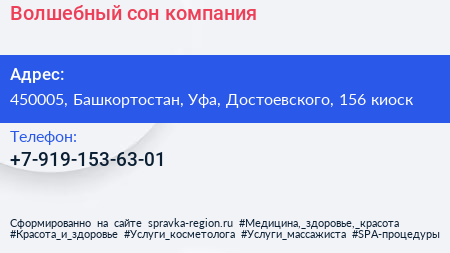 Волшебный сон, компания по адресу 450005, Башкортостан, Уфа, Достоевского, 156 киоск в дальнейшем Организация, размещена в следующих категориях: