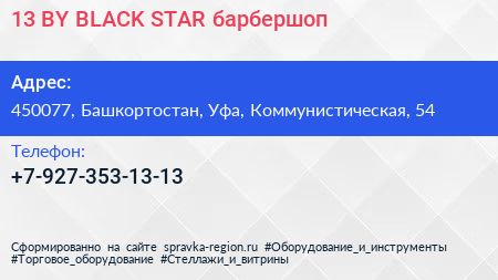 13 BY BLACK STAR, барбершоп по адресу 450077, Башкортостан, Уфа, Коммунистическая, 54 в дальнейшем Организация, размещена в следующих категориях: