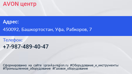 AVON, центр по адресу 450092, Башкортостан, Уфа, Рабкоров, 7 в дальнейшем Организация, размещена в следующих категориях: