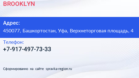 BROOKLYN по адресу 450077, Башкортостан, Уфа, Верхнеторговая площадь, 4 в дальнейшем Организация, размещена в следующих категориях: