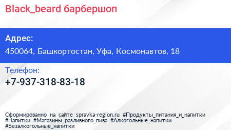 Black_beard, барбершоп по адресу 450064, Башкортостан, Уфа, Космонавтов, 18 в дальнейшем Организация, размещена в следующих категориях: