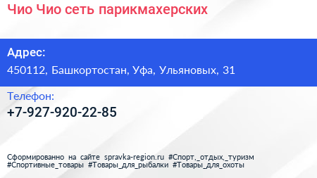 Чио Чио, сеть парикмахерских по адресу 450112, Башкортостан, Уфа, Ульяновых, 31 в дальнейшем Организация, размещена в следующих категориях: