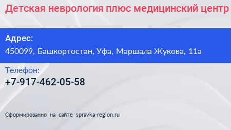 Детская неврология плюс, медицинский центр по адресу 450099, Башкортостан, Уфа, Маршала Жукова, 11а в дальнейшем Организация, размещена в следующих категориях: