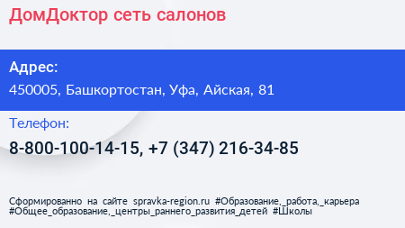 ДомДоктор, сеть салонов по адресу 450005, Башкортостан, Уфа, Айская, 81 в дальнейшем Организация, размещена в следующих категориях: