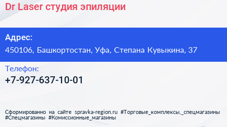 Dr.Laser, студия эпиляции по адресу 450106, Башкортостан, Уфа, Степана Кувыкина, 37 в дальнейшем Организация, размещена в следующих категориях: