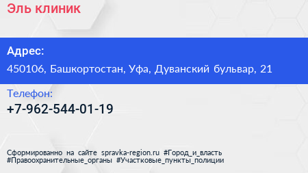 Эль-клиник по адресу 450106, Башкортостан, Уфа, Дуванский бульвар, 21 в дальнейшем Организация, размещена в следующих категориях: