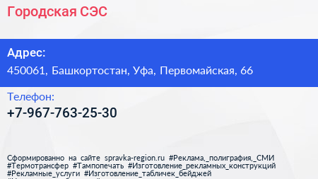 Городская СЭС по адресу 450061, Башкортостан, Уфа, Первомайская, 66 в дальнейшем Организация, размещена в следующих категориях: