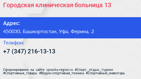 Городская клиническая больница №13 по адресу 450030, Башкортостан, Уфа, Ферина, 2 в дальнейшем Организация, размещена в следующих категориях: