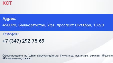 КСТ по адресу 450098, Башкортостан, Уфа, проспект Октября, 132/3 в дальнейшем Организация, размещена в следующих категориях: