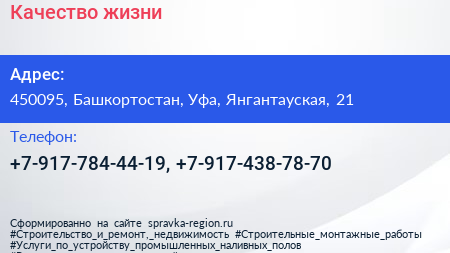 Качество жизни по адресу 450095, Башкортостан, Уфа, Янгантауская, 21 в дальнейшем Организация, размещена в следующих категориях: