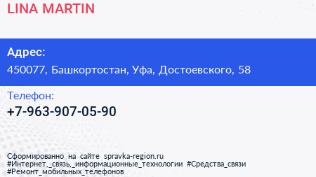 LINA MARTIN по адресу 450077, Башкортостан, Уфа, Достоевского, 58 в дальнейшем Организация, размещена в следующих категориях: