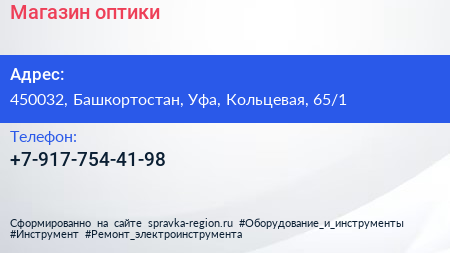 Магазин оптики по адресу 450032, Башкортостан, Уфа, Кольцевая, 65/1 в дальнейшем Организация, размещена в следующих категориях: