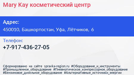 Mary Kay, косметический центр по адресу 450010, Башкортостан, Уфа, Лётчиков, 6 в дальнейшем Организация, размещена в следующих категориях: