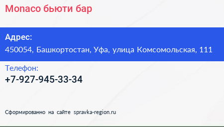 Monaco, бьюти-бар по адресу 450054, Башкортостан, Уфа, улица Комсомольская, 111 в дальнейшем Организация, размещена в следующих категориях: